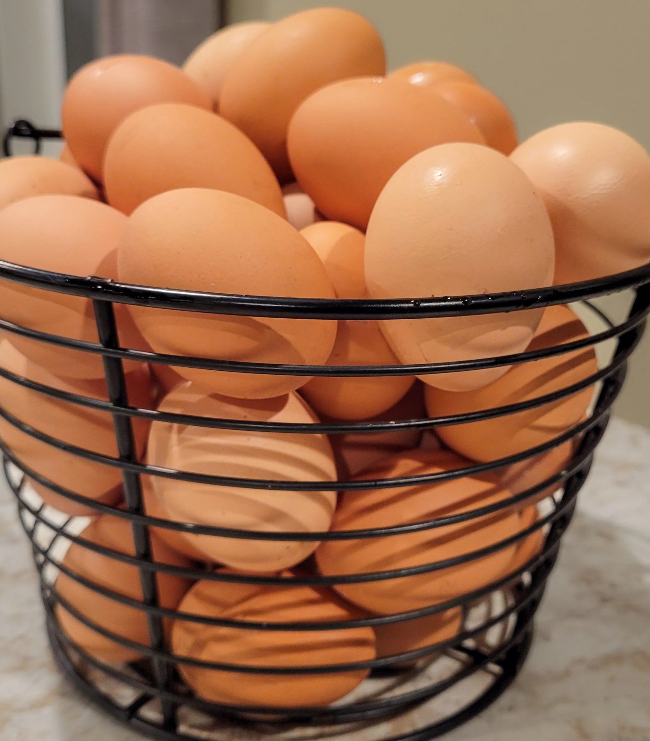 I am collecting a dozen eggs a day, and we have 20 eggs currently developing under one of our broody chickens.